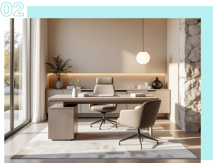 إدارة وتنسيق الأعمال غير المرتبطة بالأثاث عبر مختصين حسب الحاجة، مثل أعمال الكهرباء، الرخام، المطابخ، وغيرها لضمان تكامل التنفيذ.